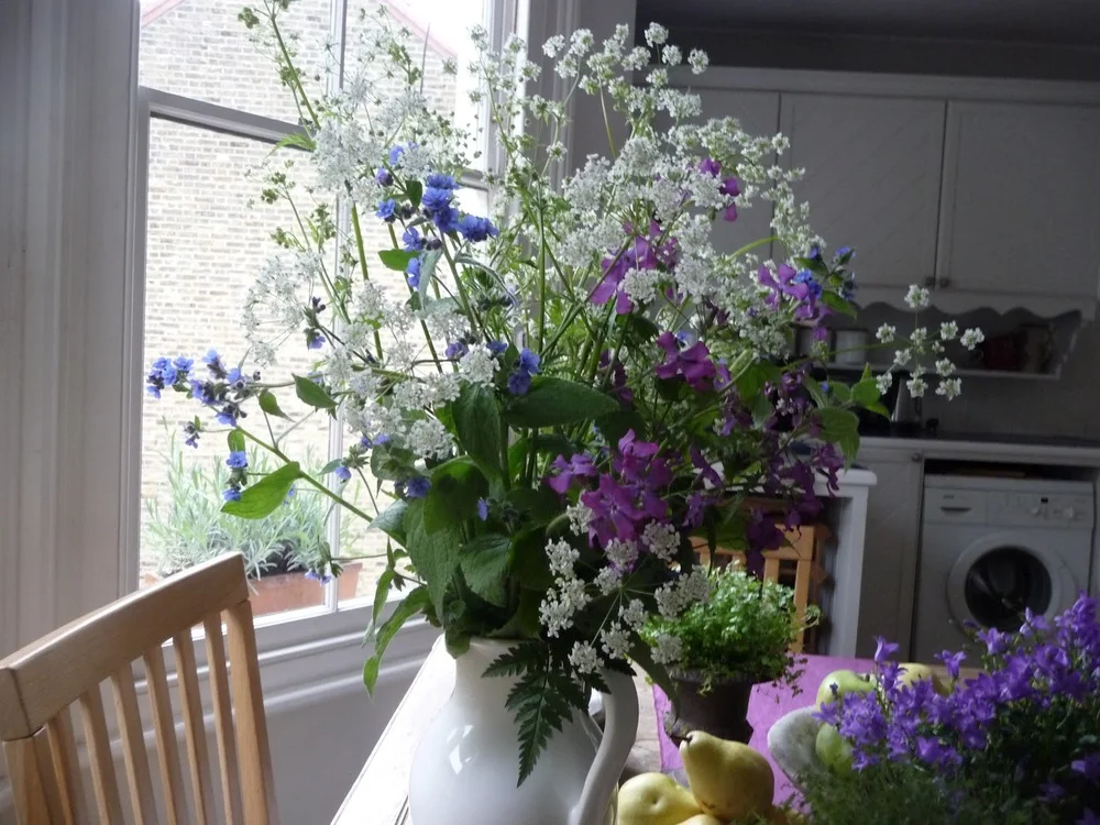 Wild flowers on the commons in London are gorgeous (commons are parks, to anyone outside the UK!). Just check first if there is a sign saying you can't pick the flowers as I saw the sign as I walked past with a huge bunch of cow parsley, borage and other wild flowers. Lucky no parks police around to arrest me!