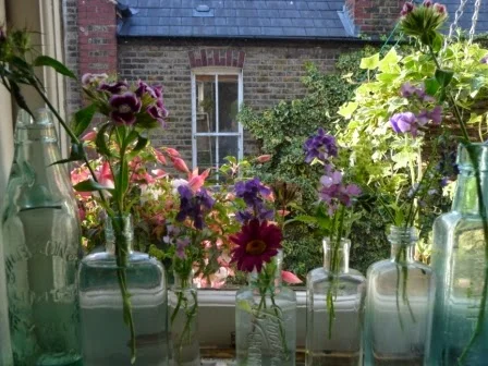 I put any small secondary stems that I remove into vintage bottles and pots so there is no waste. I use containers from Phoenix on Golborne one of my favourite shops.
